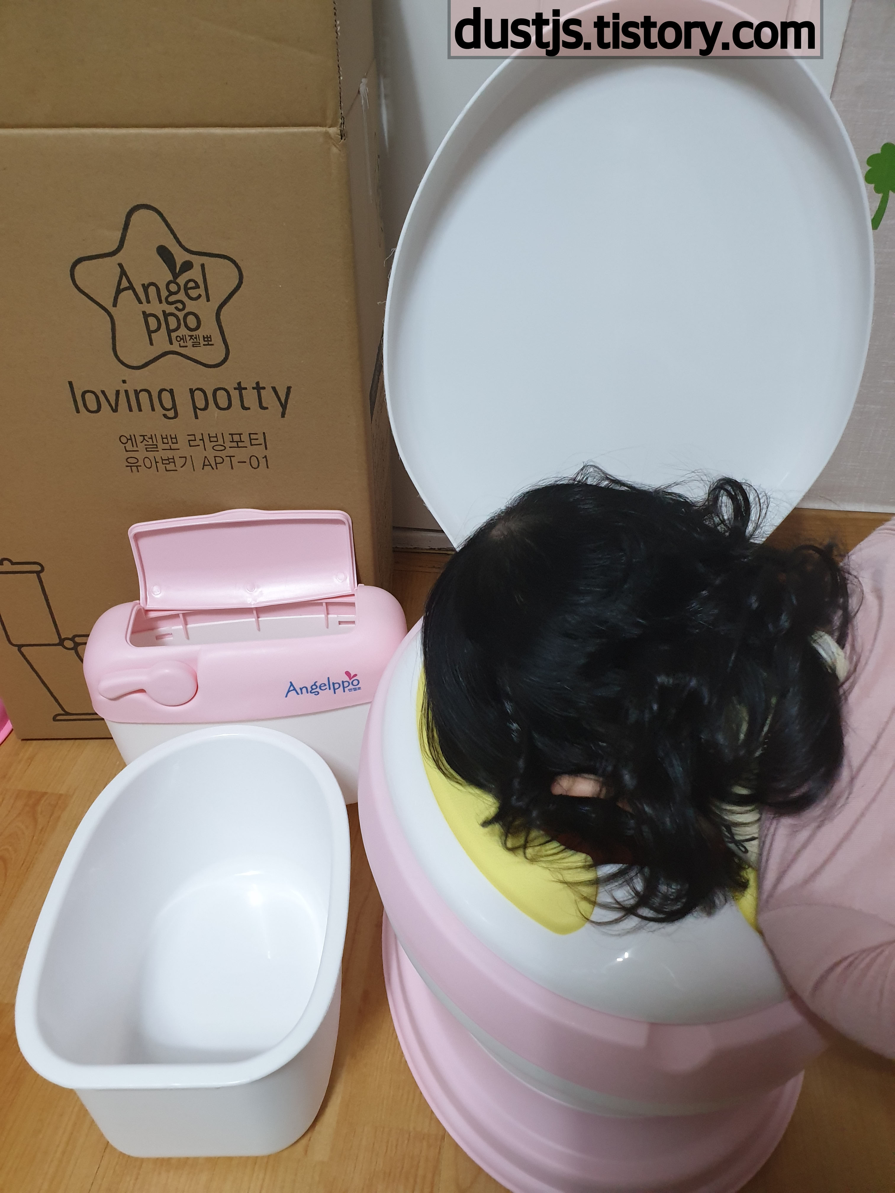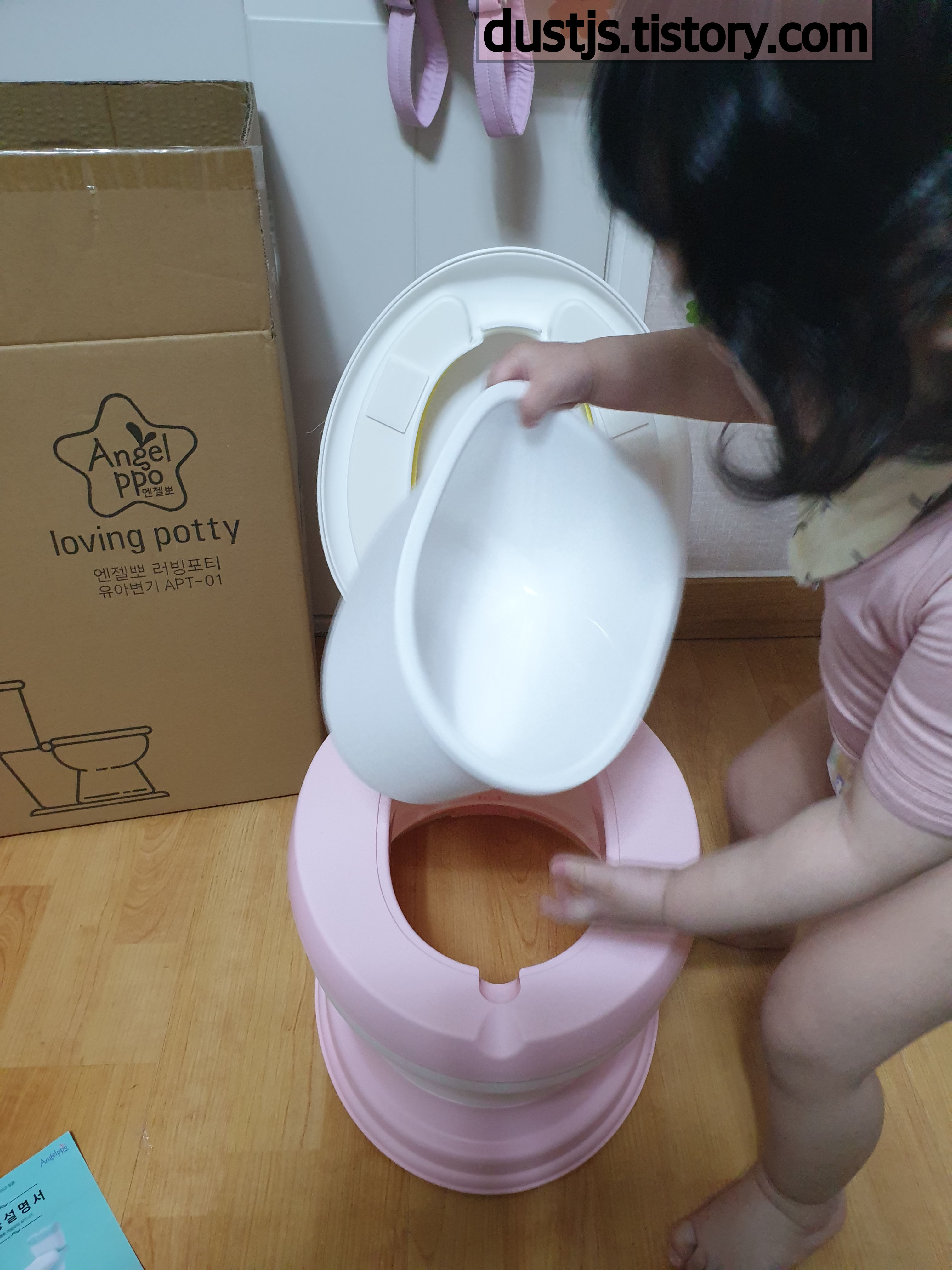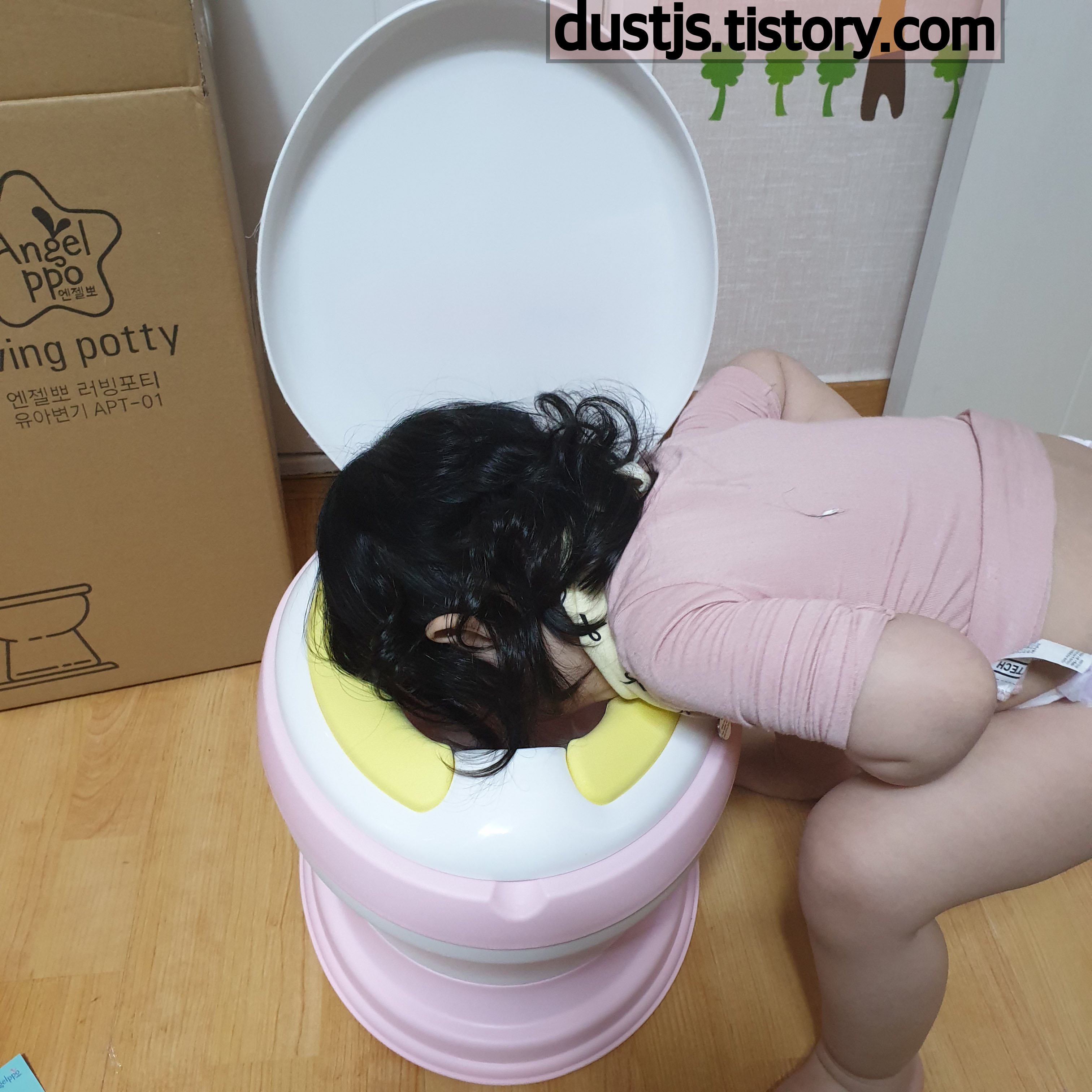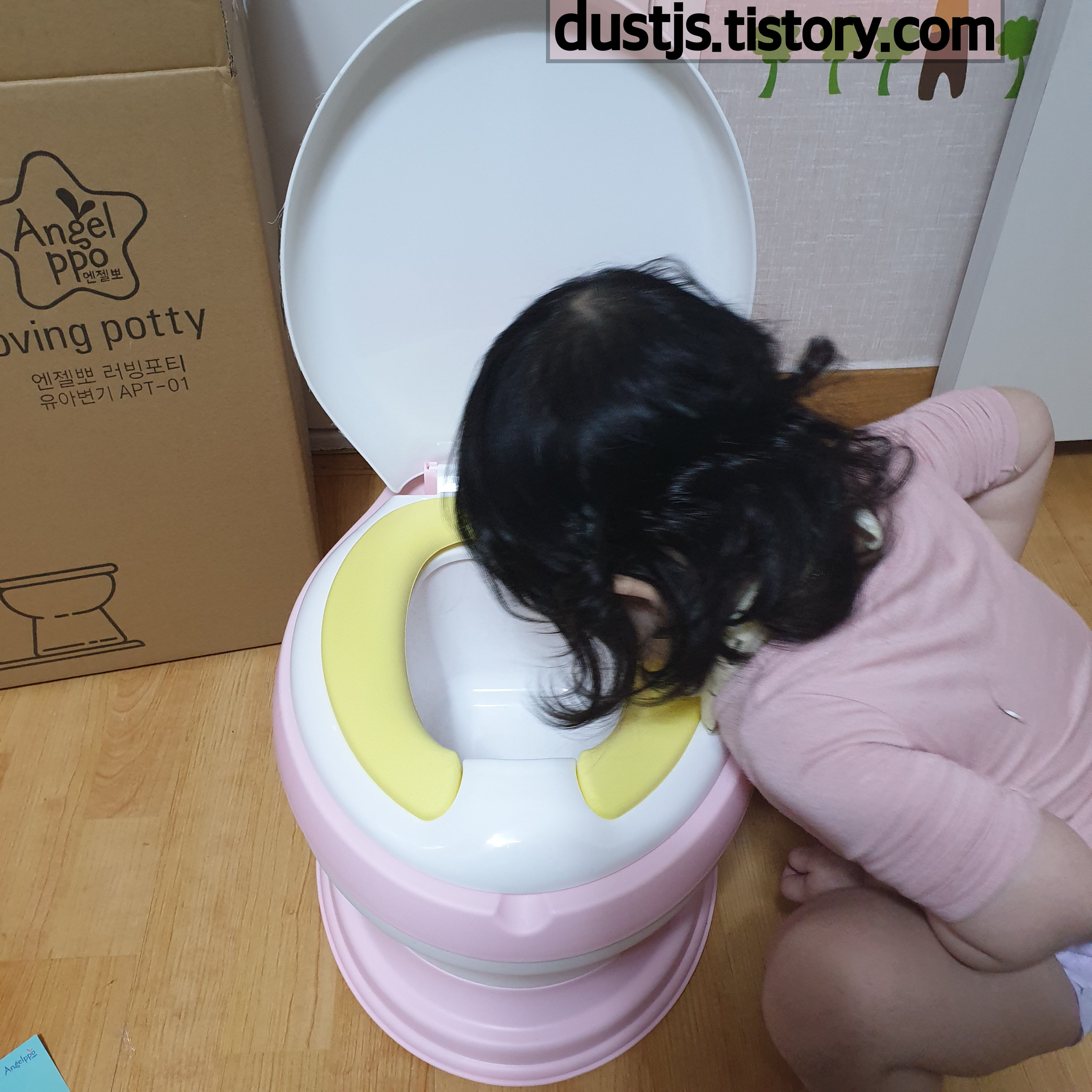 유아변기 연습 하는 엔젤뽀 러빙포티 APT-01 입니다.