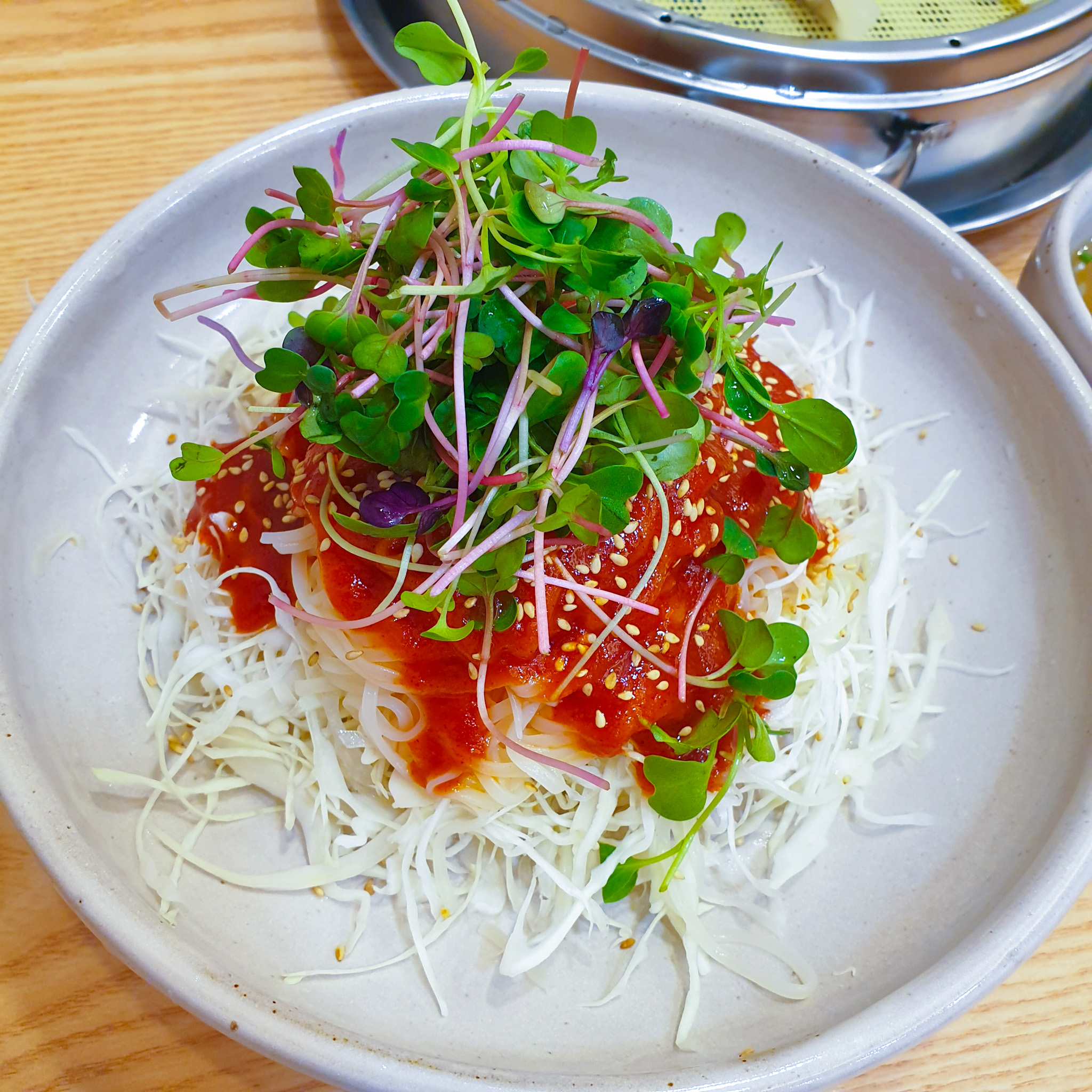 반찬으로 나오는 양배추 김치랑 같이 먹는다면 간이 딱 맞을 거예요.