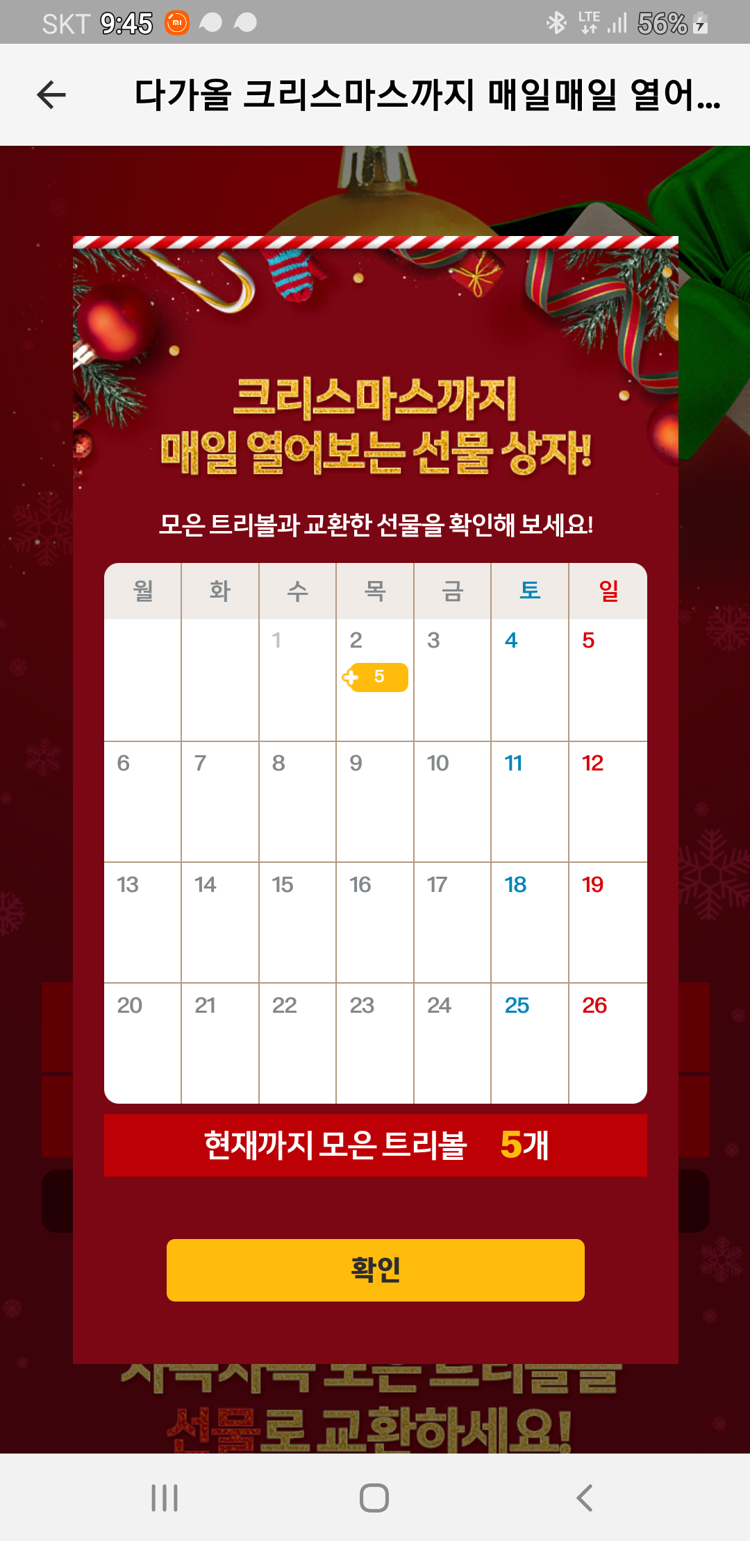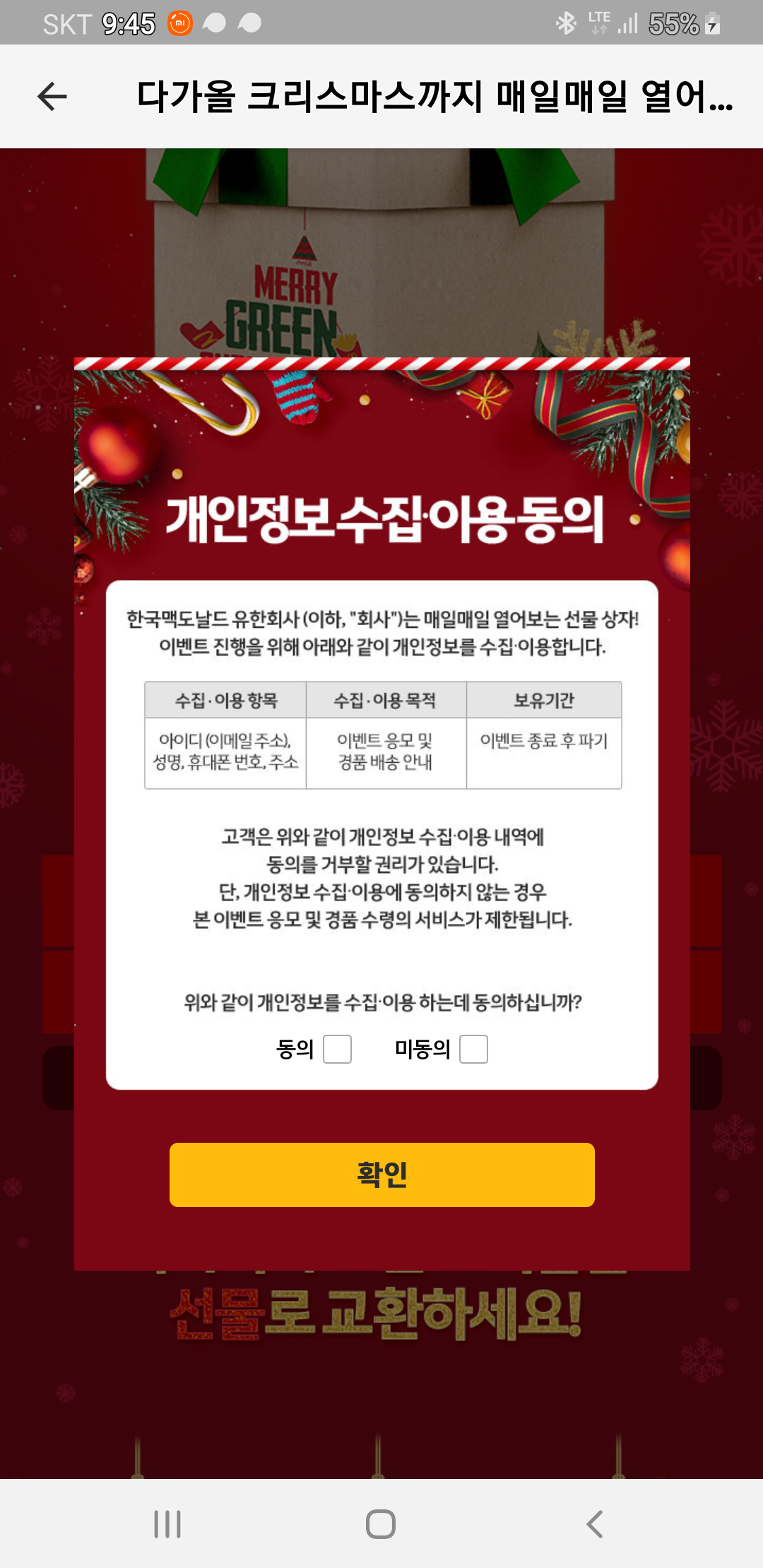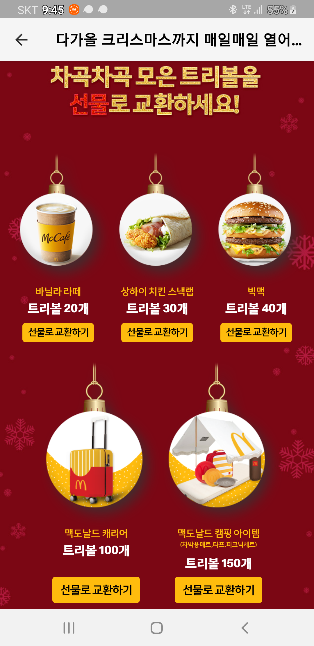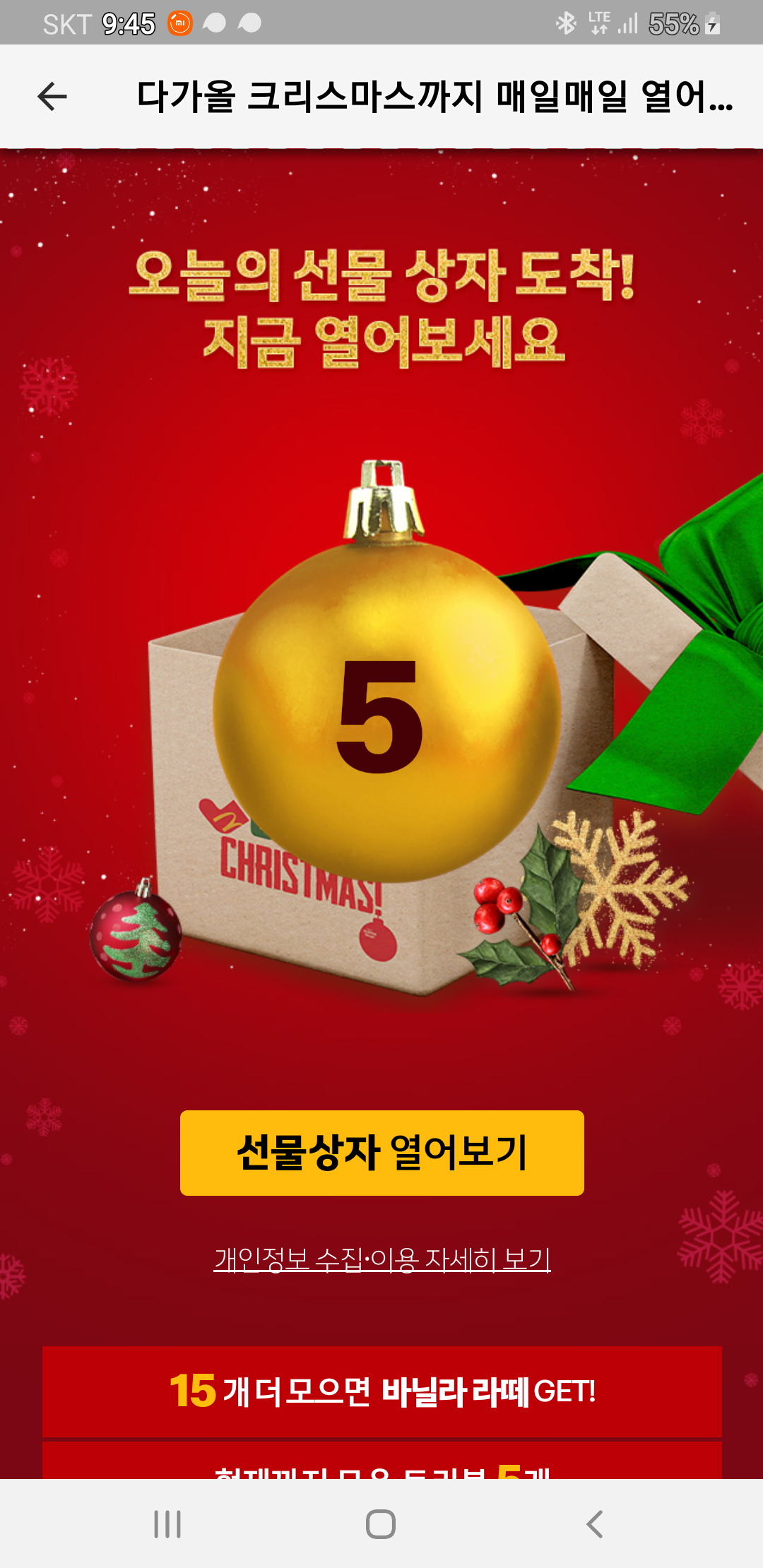 맥도날드 어플에서 매일매일 열어보는 선물 상자 이벤트를 합니다.